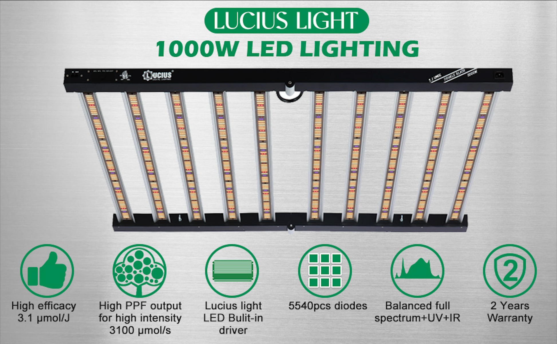 1000W Samsung LM281B LED Grow Light +UV+lR | Lucius Double Black Label