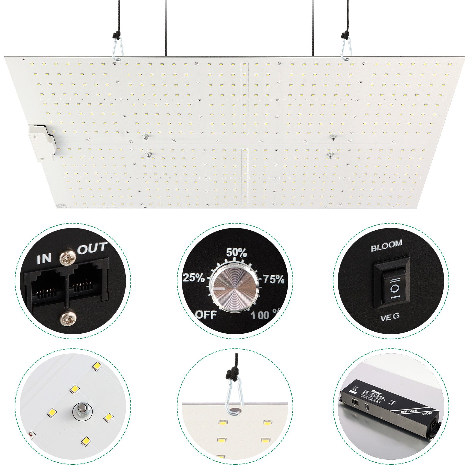 Strong efficiency for the class: Listed up to 2.8 µmol/J, translating to a PPF around 672 µmol/s - right in the pocket for productive veg and balanced flowering.