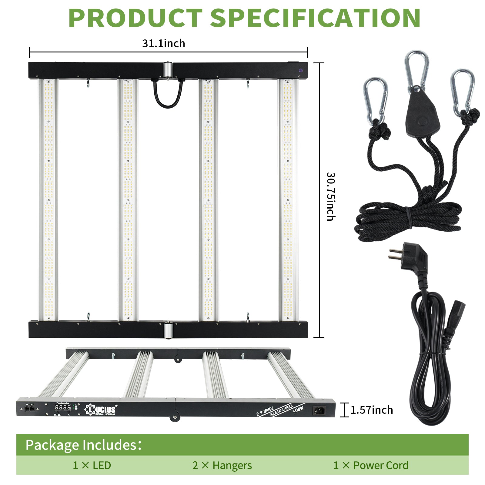 | PPF (calculated) | 1160 µmol/s (PPE × wattage) |