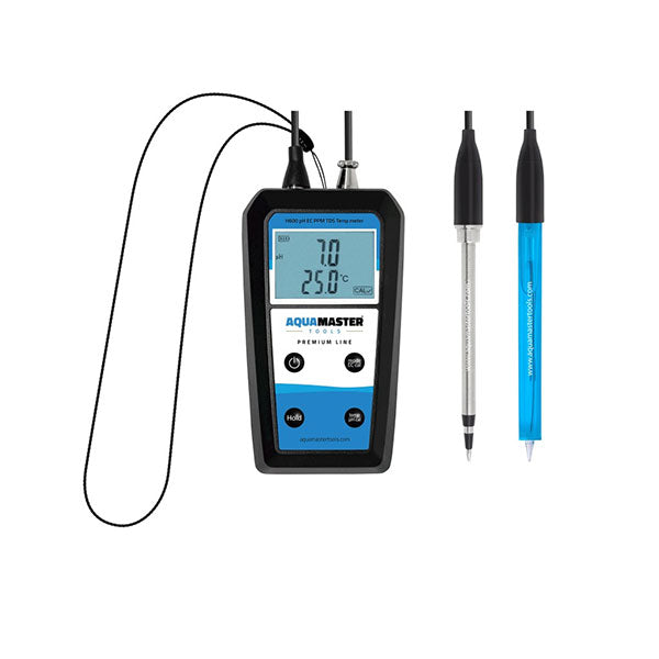 One of its key features is the built-in calibration indicator, which acts as a proactive reminder for recalibration, ensuring consistent measurement accuracy. This meter is also designed to be compatible with the standard Aqua Master Tools pH and EC electrodes.
