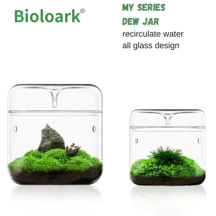 This high quality glass terrarium by Bioloark is perfect for creating a miniature enclosed aquascape, mini garden or forest in a perfect, stunning jar with a matching lid. These terrariums have been carefully designed with circulation in mind and the lid is equipped with an inward-facing drop shaped conical design. As evaporation occurs, water drips straight back into the landscape meaning it’s not only a clever but also economical design reusing what would otherwise be wasted water. In addition, it has 2 built in ventilation holes to balance out humidity in versus humidity out.